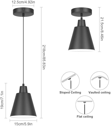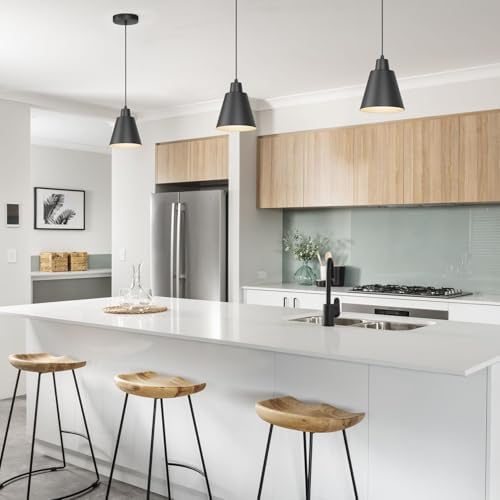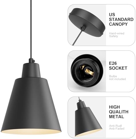 – **Stylish Design**: Each pendant light features a sleek black metal shade that exudes a rustic yet contemporary vibe, making it the perfect addition to farmhouse-style or industrial-themed interiors.